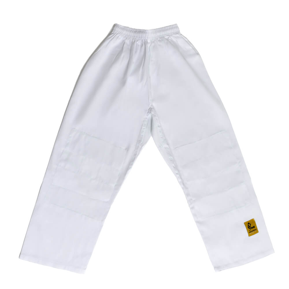 Tyto kalhoty v klasickém bílém provedení jsou určeny pro děti a nejen začínající judisty. Jsou vyrobeny ze 100% bavlny a jsou vhodné ke kimonům s gramáží 450 g a vyšší, což zajišťuje jejich lehkost, pevnost a maximální pohodlí při pohybu.