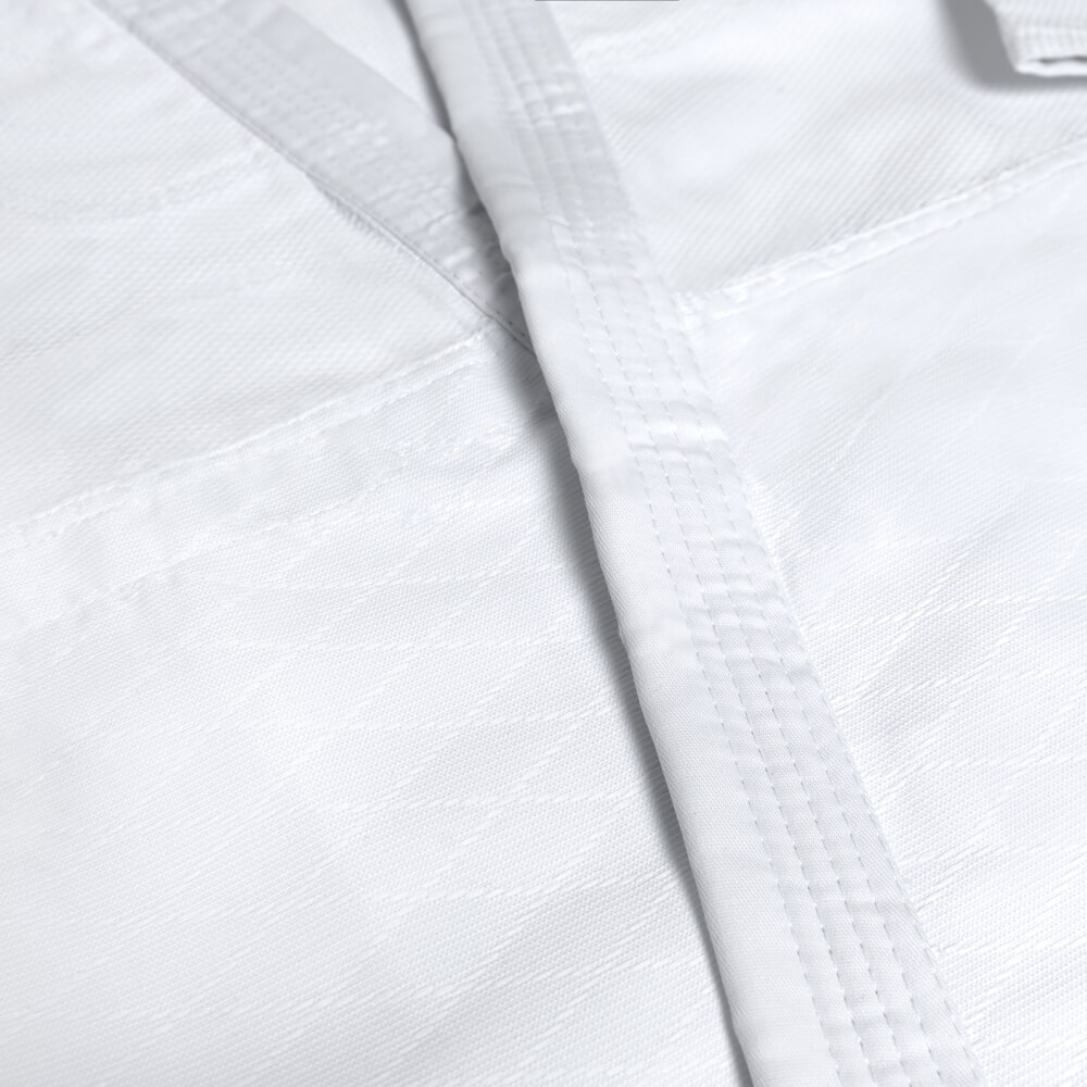 Kimono je vyrobeno ze 100% bavlny. Kabát ve struktuře rýžového zrna zajišťuje pohodlí a odolnost, a pro delší životnost je zesílen v oblasti ramen. Kalhoty mají v pase gumu i šňůrku a dvojitou výztuž kolen. Každé kimono je dodáváno s bílým páskem MASUTAZU, případně si můžete vybrat z naší široké nabídky dalších pásků.