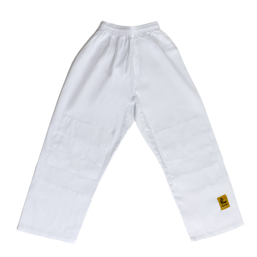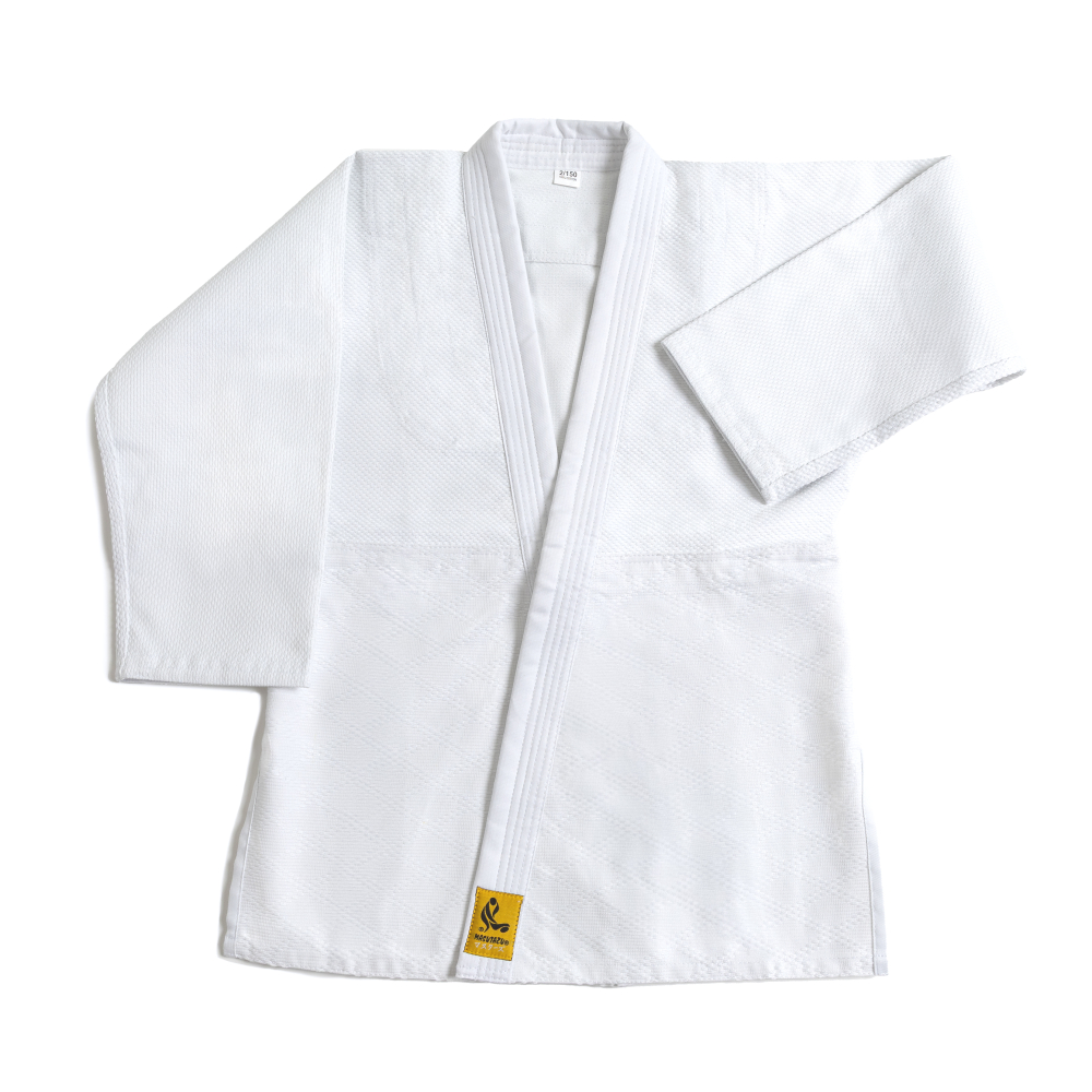 Kimono je vyrobeno ze 100% bavlny. Kabát ve struktuře rýžového zrna zajišťuje pohodlí a odolnost, a pro delší životnost je zesílen v oblasti ramen. Kalhoty mají v pase gumu i šňůrku a dvojitou výztuž kolen.